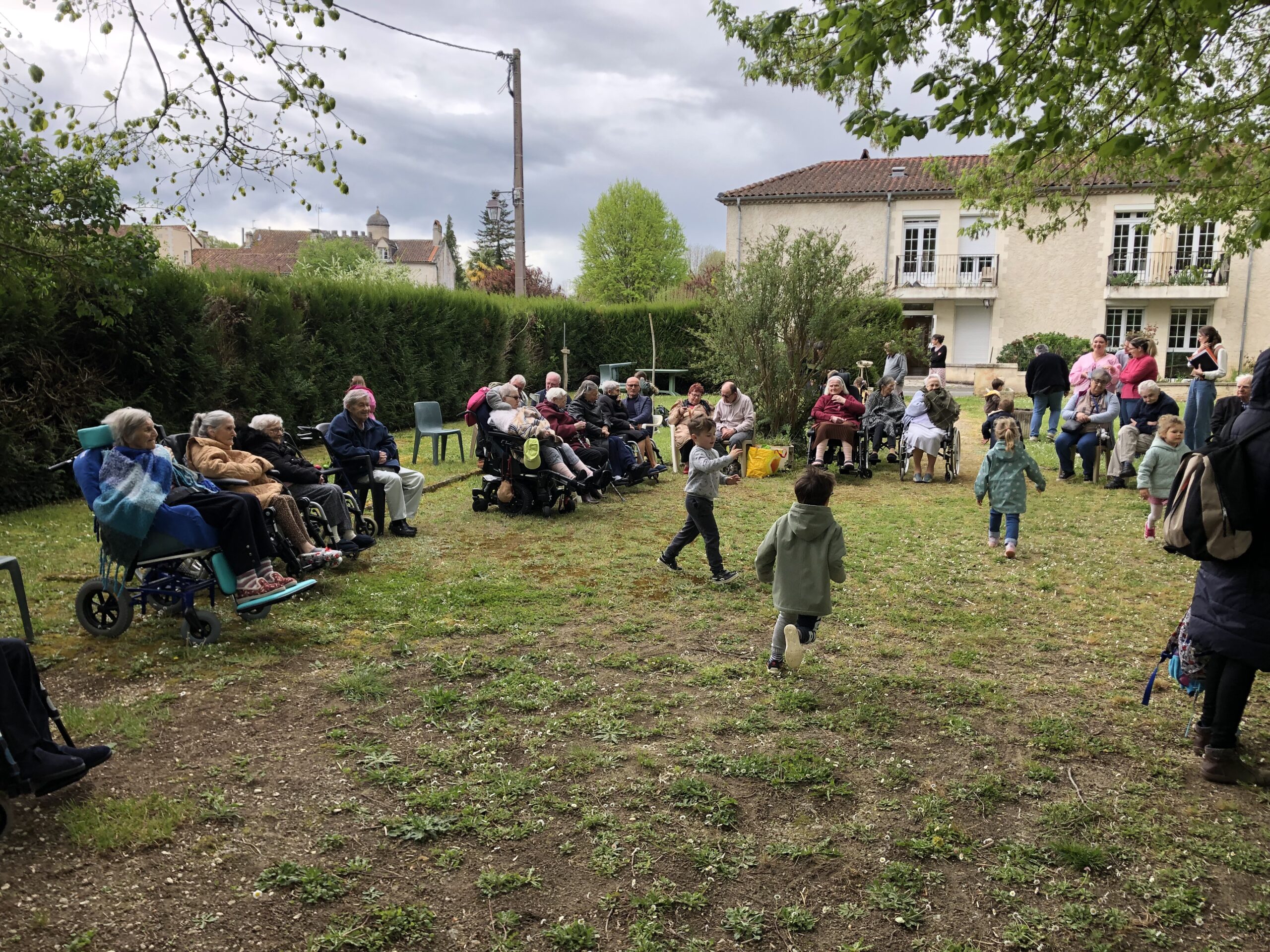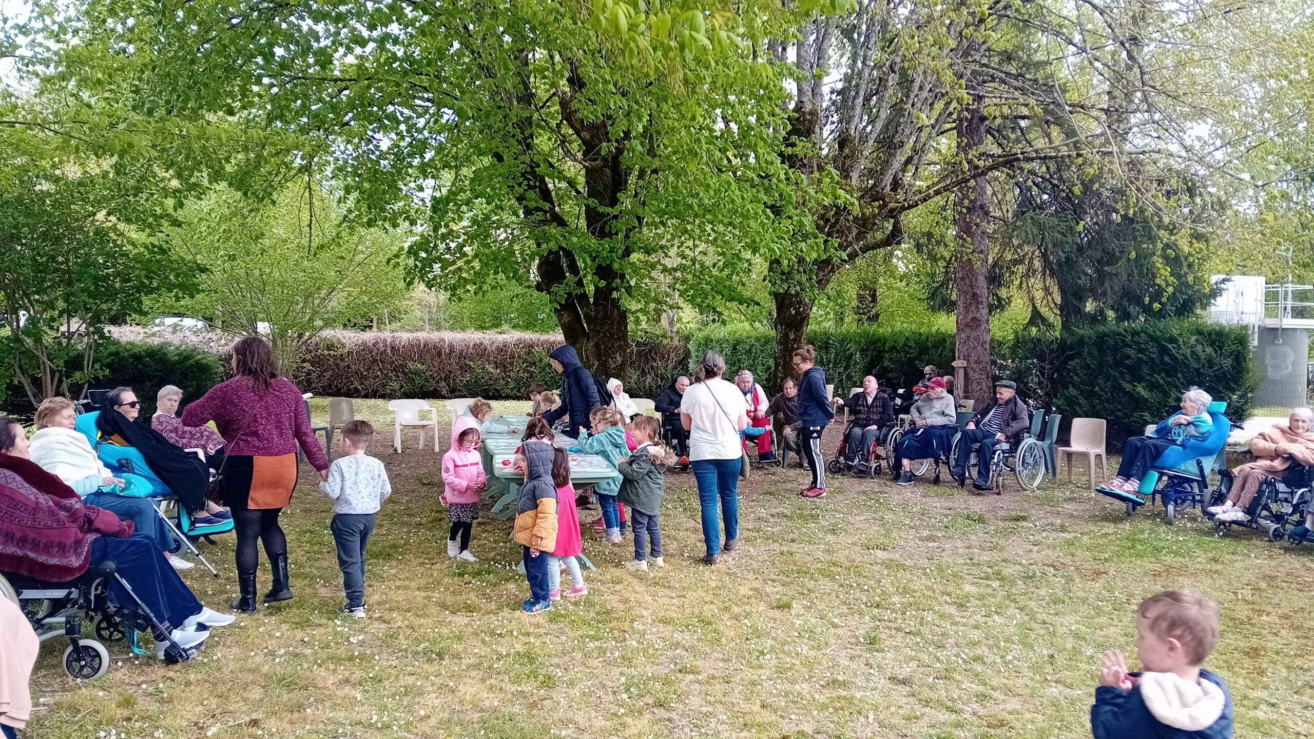 Ce jeudi, les enfants de l’école maternelle de BOURDEILLES sont venus nous rendre visite pour une grande chasse aux œufs dans le parc de l’EPAC. Une animation qui a associé les résidents et les enfants.