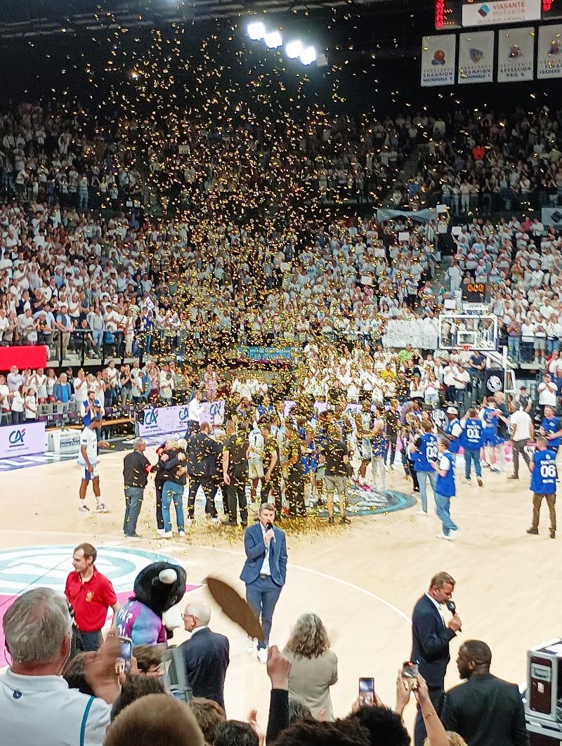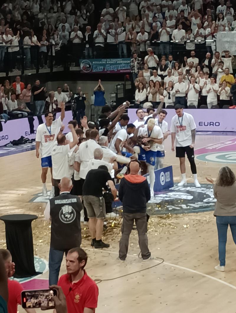 Ils y étaient! Des résidents de l’EHPAD ont pu participer au sacre de champion de France PRO B du BBD ce mardi 13 mai 2025. Cette sortie a été possible grâce à l’implication de plusieurs professionnels, animatrices, soignants et hôteliers, particulièrement Bruno qui est à l’initiative de cette activité.