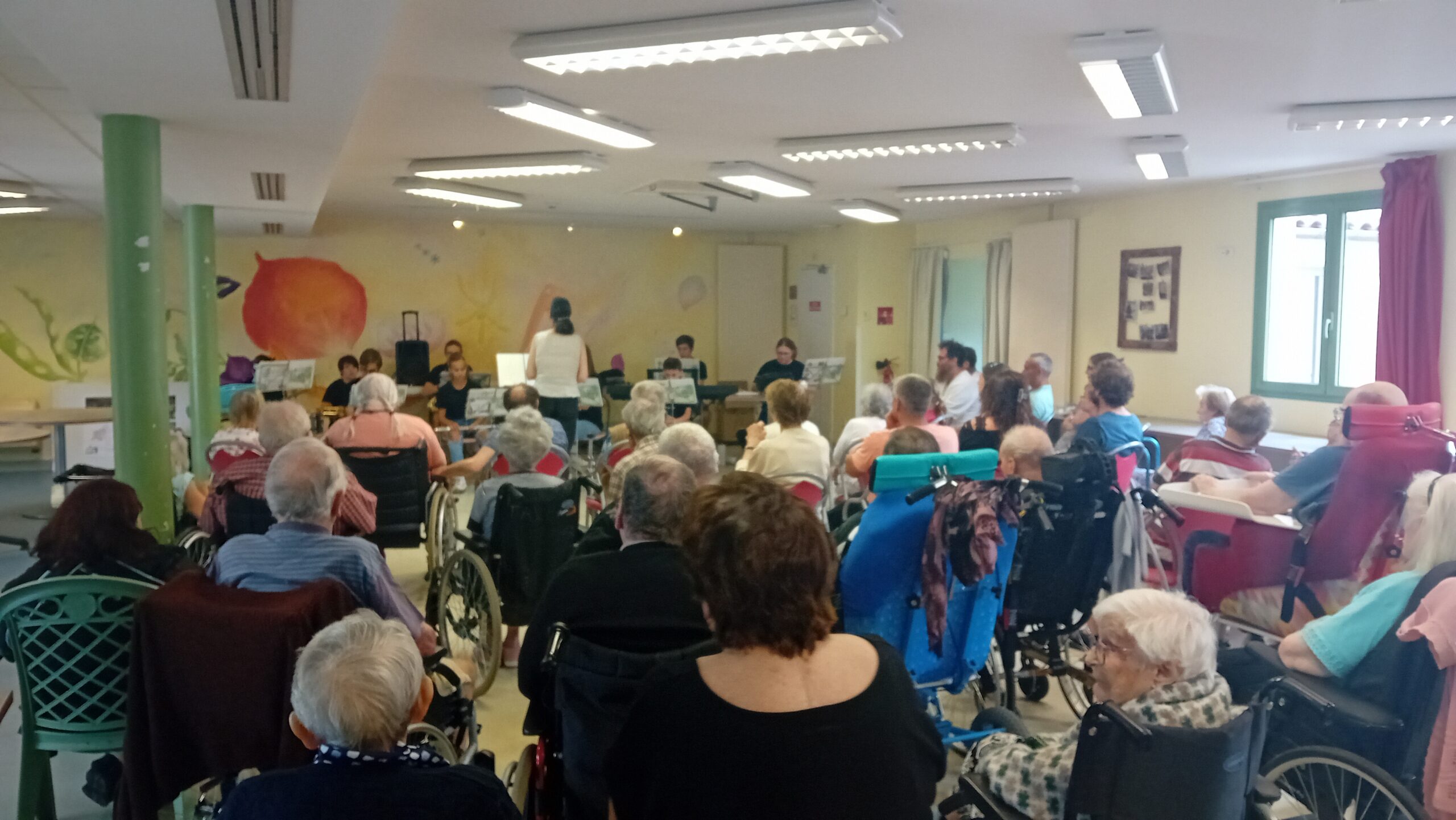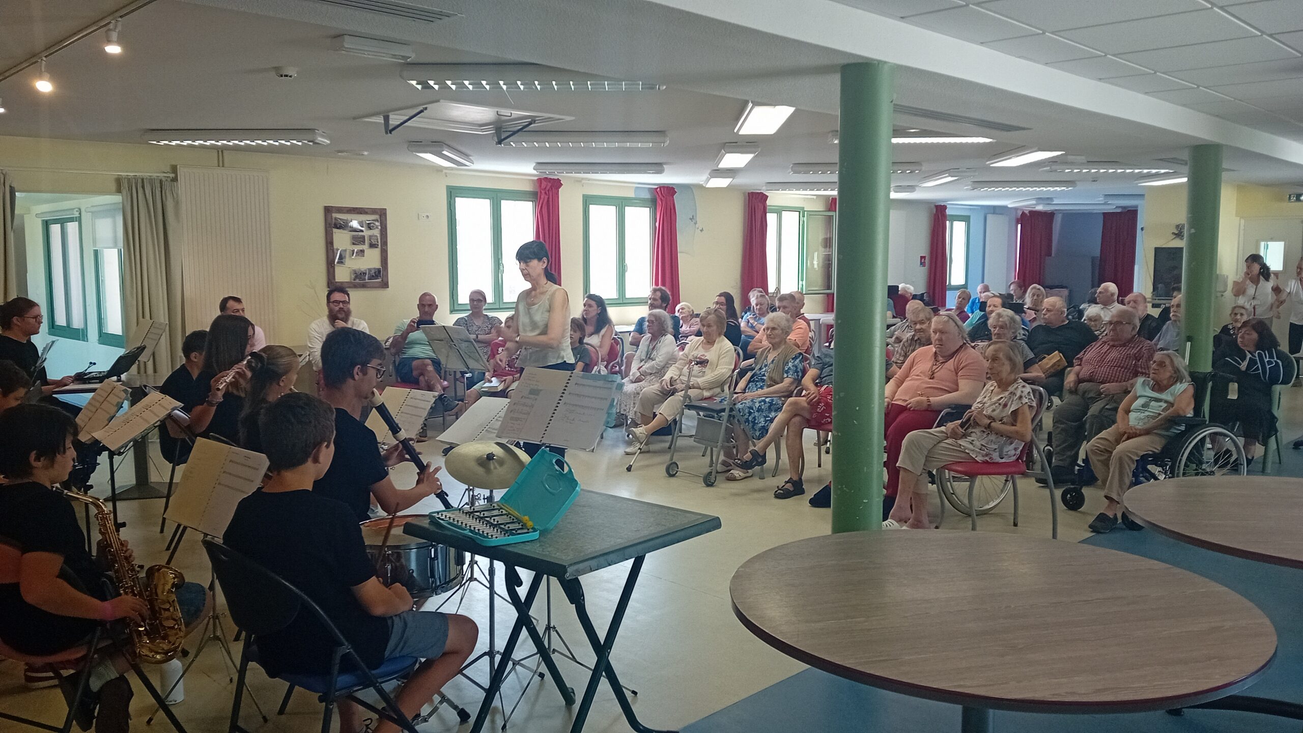 Ce lundi, la section musique du collège Michel DEBET de TOCANE SAINT-APRE est venue à l’EHPAD pour un concert : Agréable moment de partage intergénérationnel autour de la musique. Un grand MERCI aux collégiens, à Mme SEPEAU leur professeure de musique et à Mme Pascale BRUDY l’aide-soignante à l’origine de cette rencontre.
