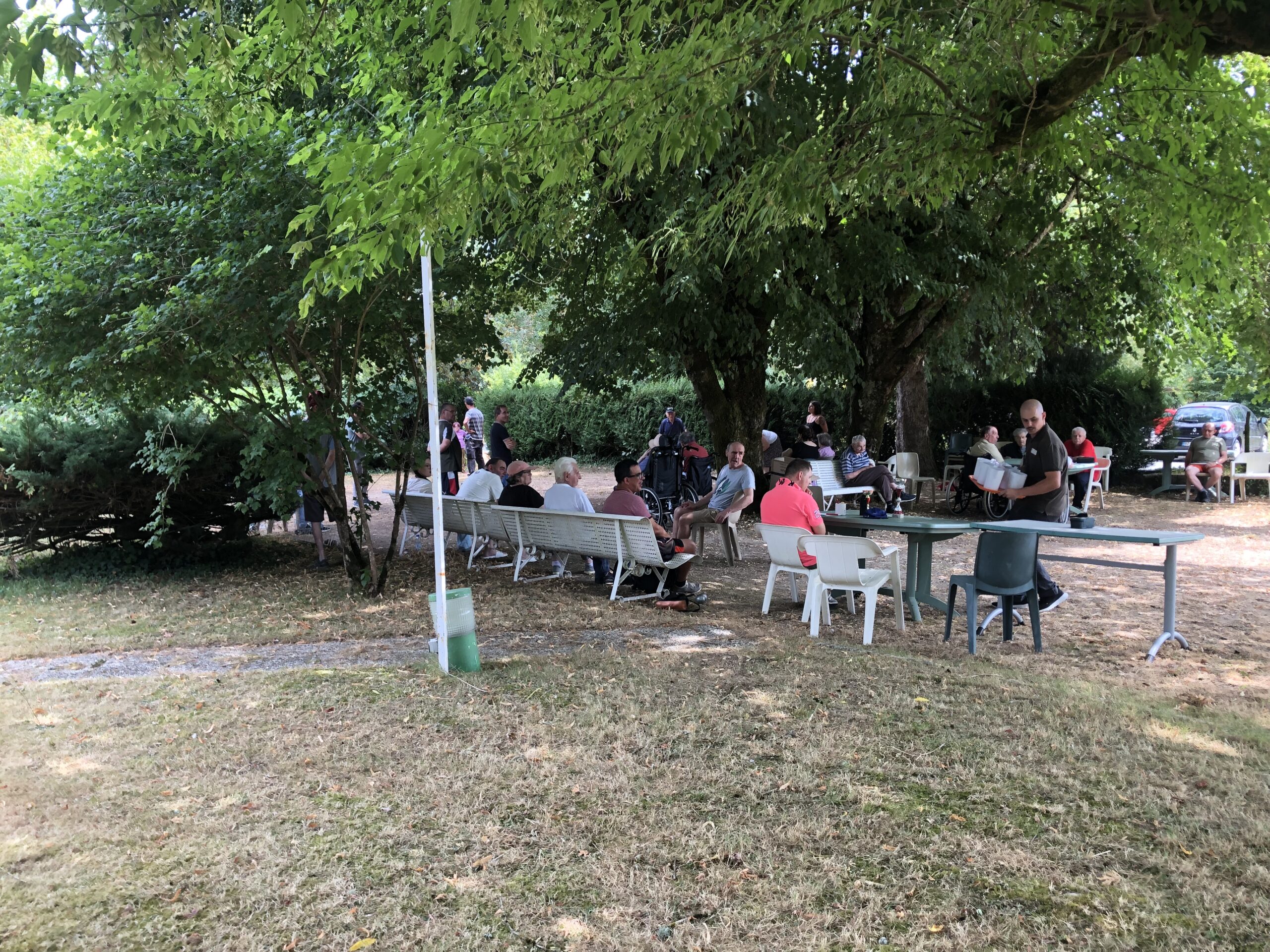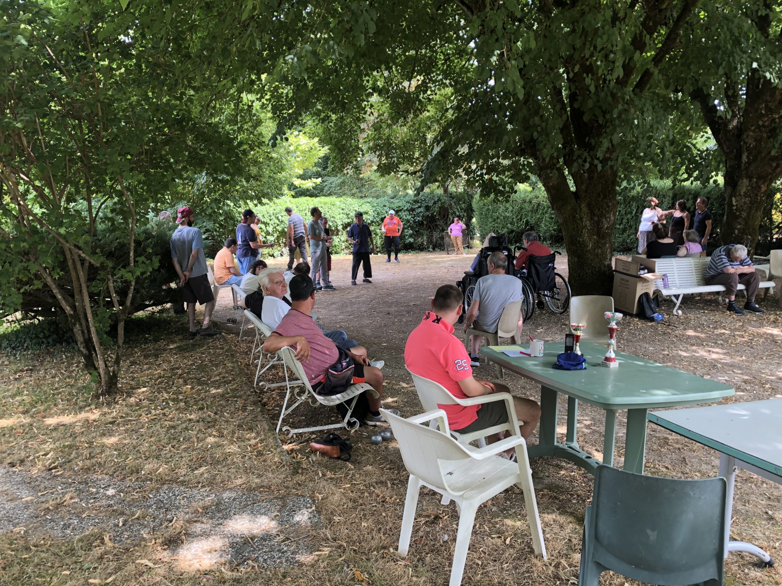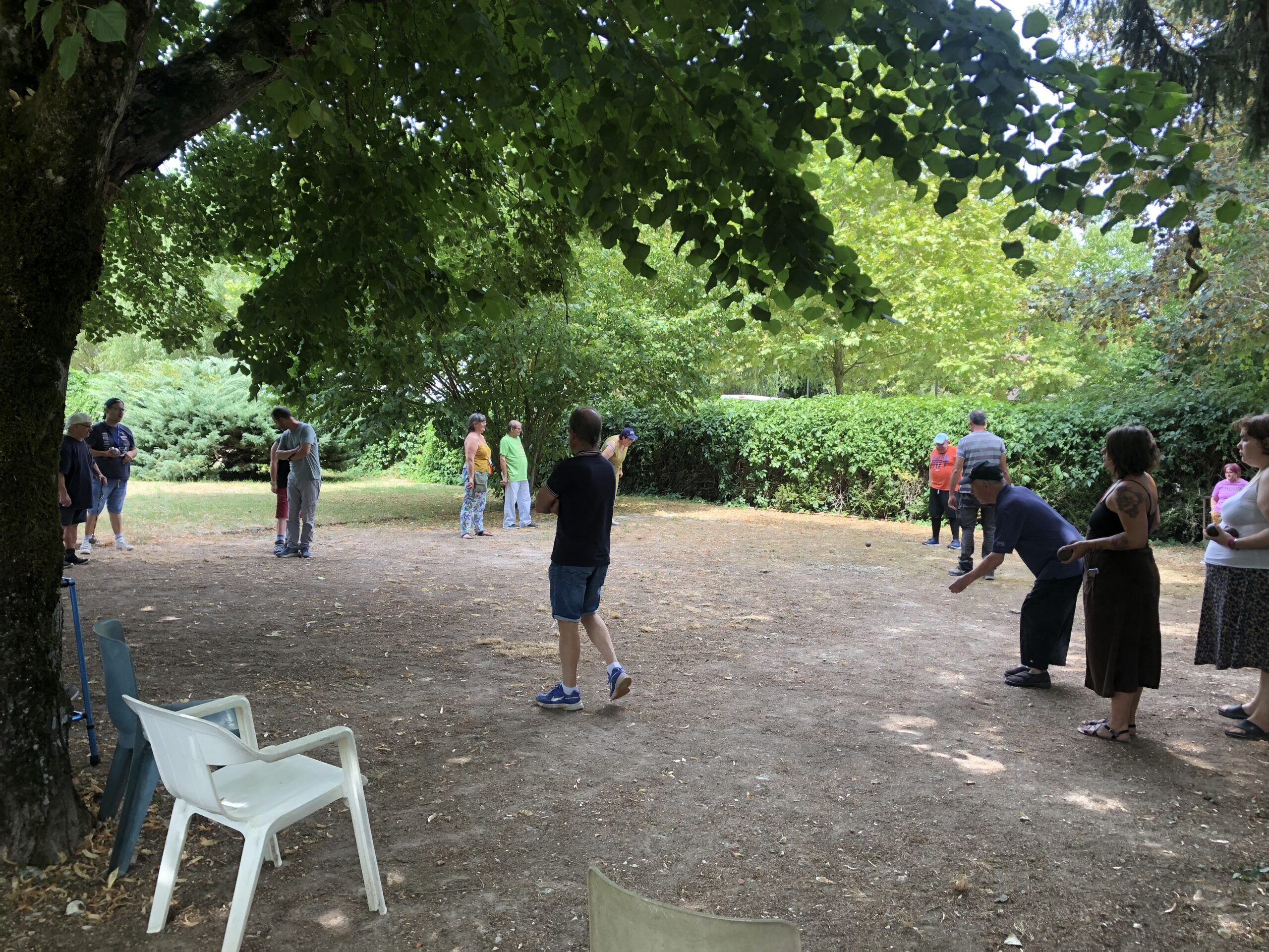 Un vendredi à l’ombre des arbres dans le parc : De la pétanque, de la belote, des rencontres intergénérationnelles (résidents des foyers et de l’EHPAD), de la bonne humeur et des éclats de rire.